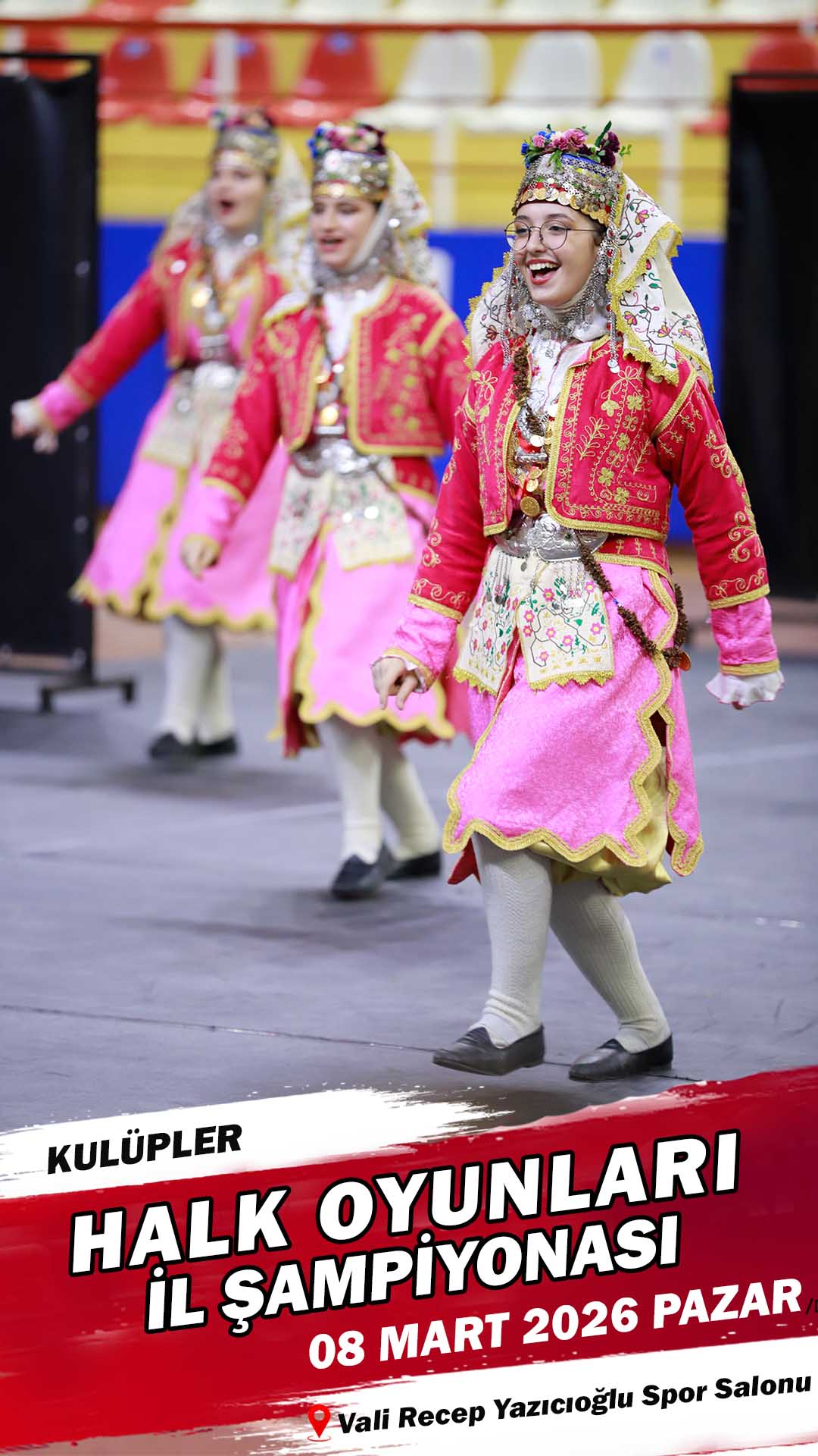 Halk Oyunları heyecanı hafta sonu Denizli’de yaşanacak. Gençlik ve Spor İl Müdürlüğü organizasyonunda 08 Mart 2026 Pazar günü saat 12.00’de başlayacak halk oyunları şöleninde 16 kulüp yarışacak.