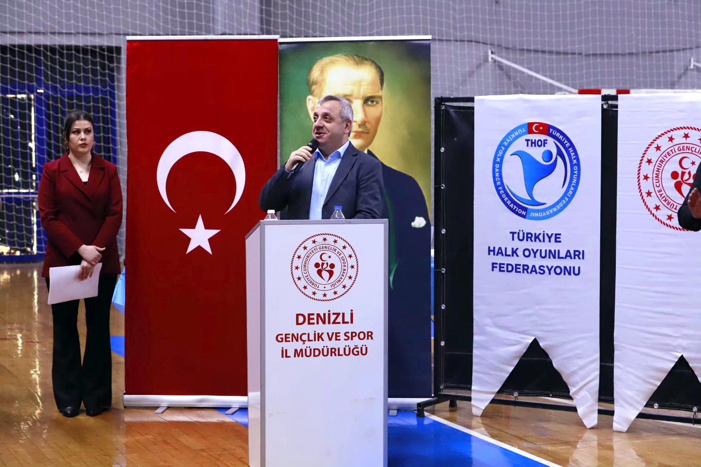 Vali Recep Yazcıoğlı Spor Salonu’nda yapılan yarışmalar öncesi ilk olarak açılış seremonisi yapıldı. Saygı duruşu ve İstiklal Marşının ardından konuşan Denizli Gençlik ve Spor İl Müdürü Süleyman Erdoğan: “Halk oyunları tarihimizi ve kültürel değerlerimizi yansıtan en büyük zenginliğimiz. Halk oyunlarımızı, sadece geçmişin bir yansıması olarak değil, geleceğe ilham veren ve kültürel çeşitliliği yücelten bir değer olarak görüyoruz.” dedi.